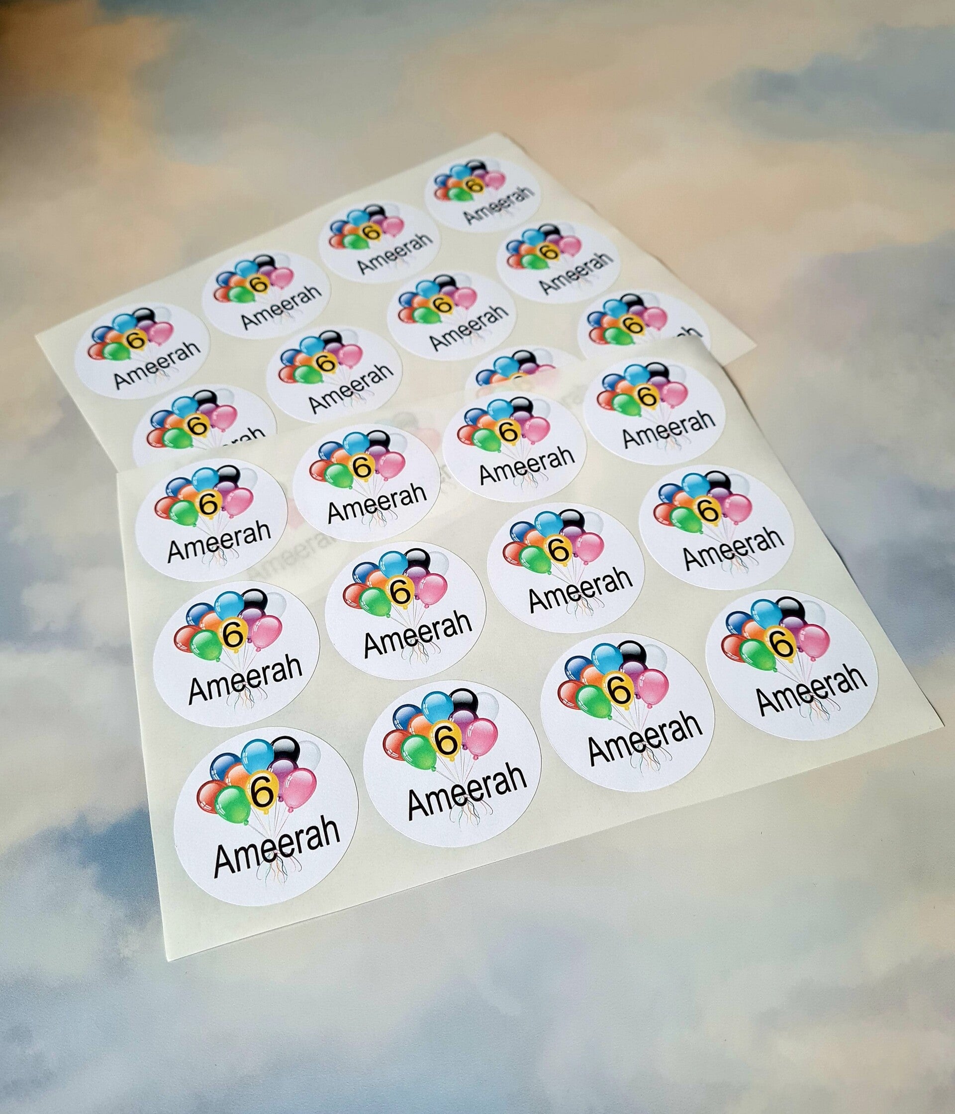 Deze ballonnen stickers zijn te personaliseren met naam en getal.
